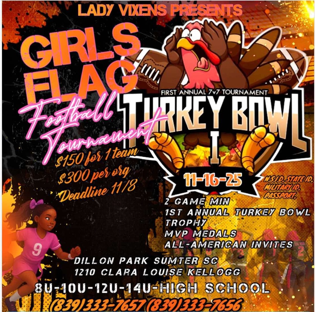 Sumter Lady Vixens Presents Girls Flag Football Turkey Bowl