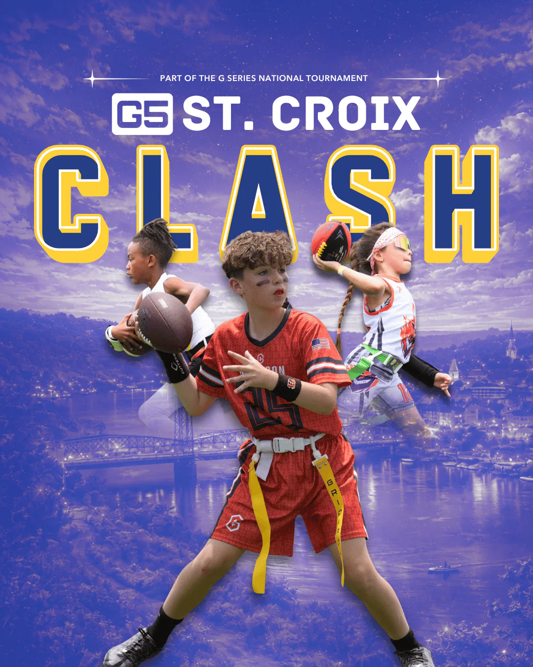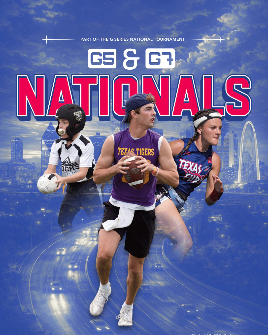 G5 Coed Divisions: 6U, 7U, 8U, 9U, 10U, 11U, 12U, 13U, 14U G5 Girls Divisions: 9U, 10U, 12U, 14U, HS (7V7 Flag HS Seniors Eligible) G7 7v7 Divisions: 9U, 10U, 12U, 14U, HS