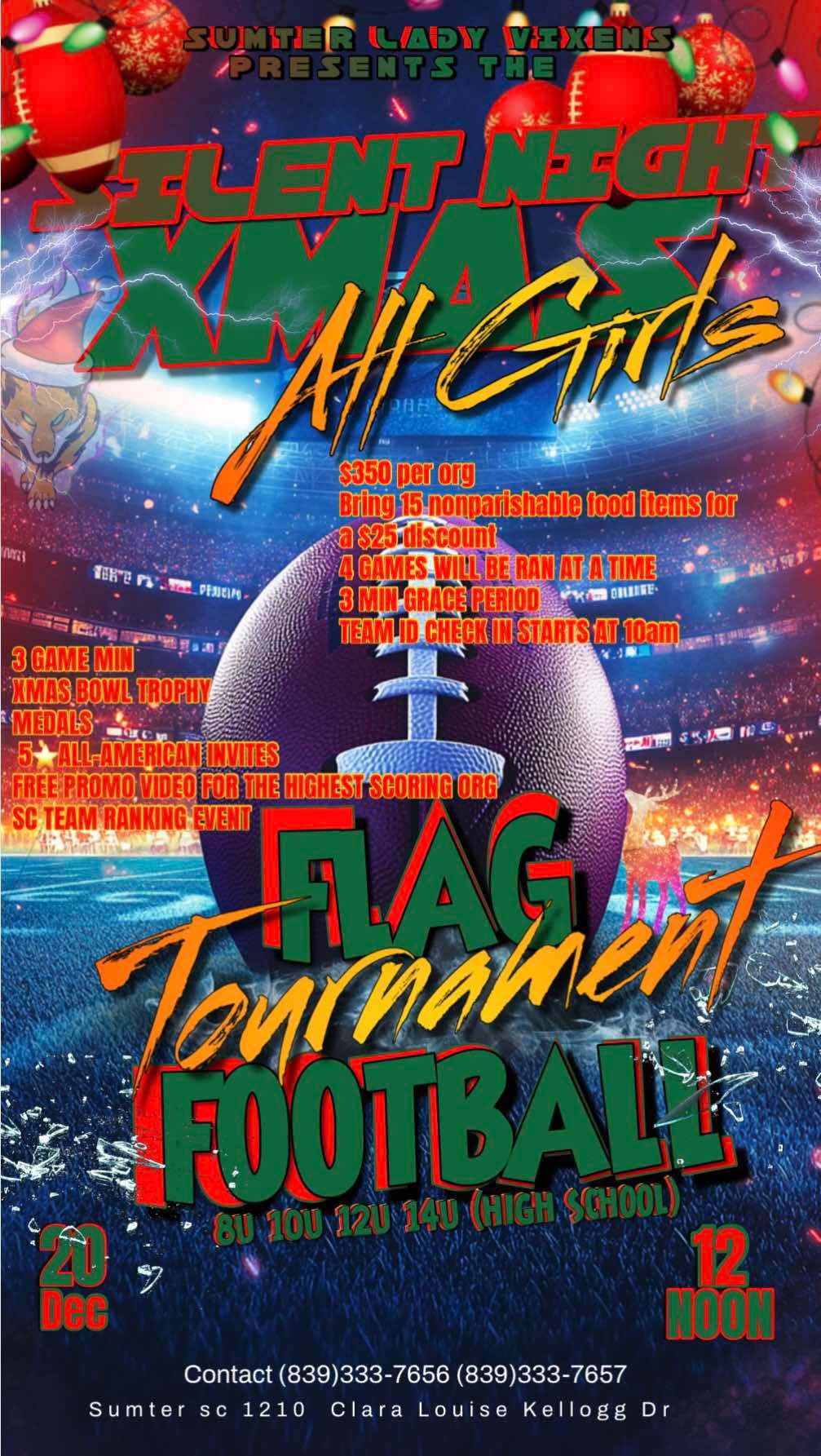 Sumter Lady Vixens Presents Ilent High Xmas All Girls Flag Football Tournament